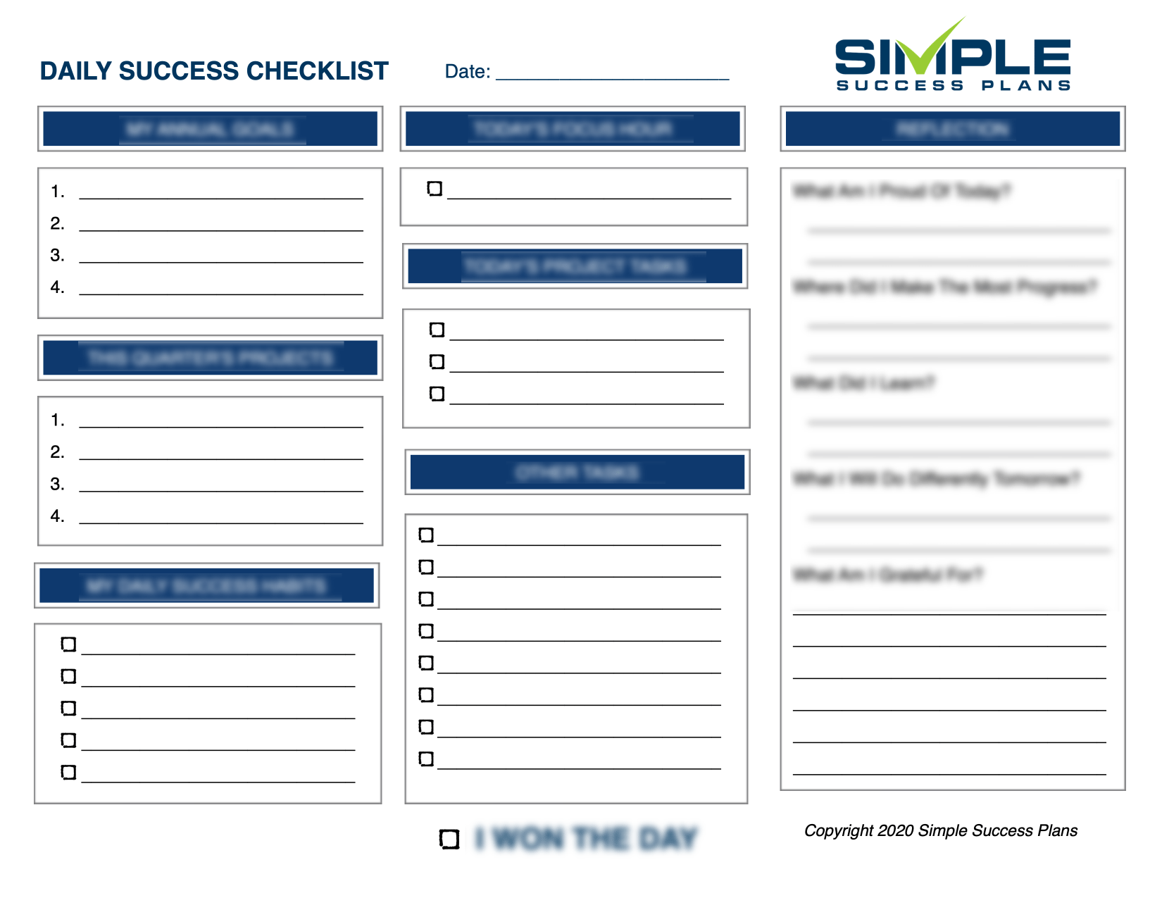 With The Daily Success Checklist, you will know exactly what to do TODAY to make the biggest progress towards your business goals.